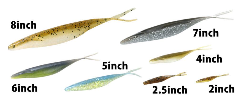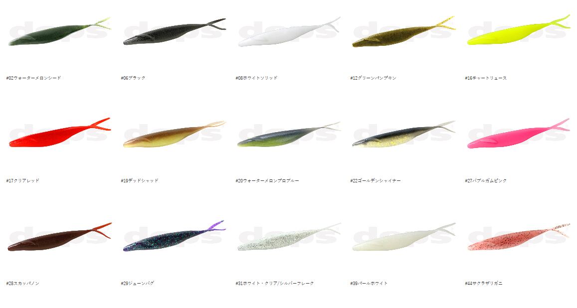 ノーシンカーでは、アユやハスが水面へ逃げ惑い、時折勢いよく水面から飛び出すような跳ね上がるダートアクション、スプリットショットやキャロライナリグのボトムレンジでも、バスに気付きボトムから突然現れ姿を隠すような跳ね上がるイメージでアクションすれば、“サカマタシャッド”の性能を発揮し、いとも簡単にバイトへと導いてくれます。¥990(税抜¥900)