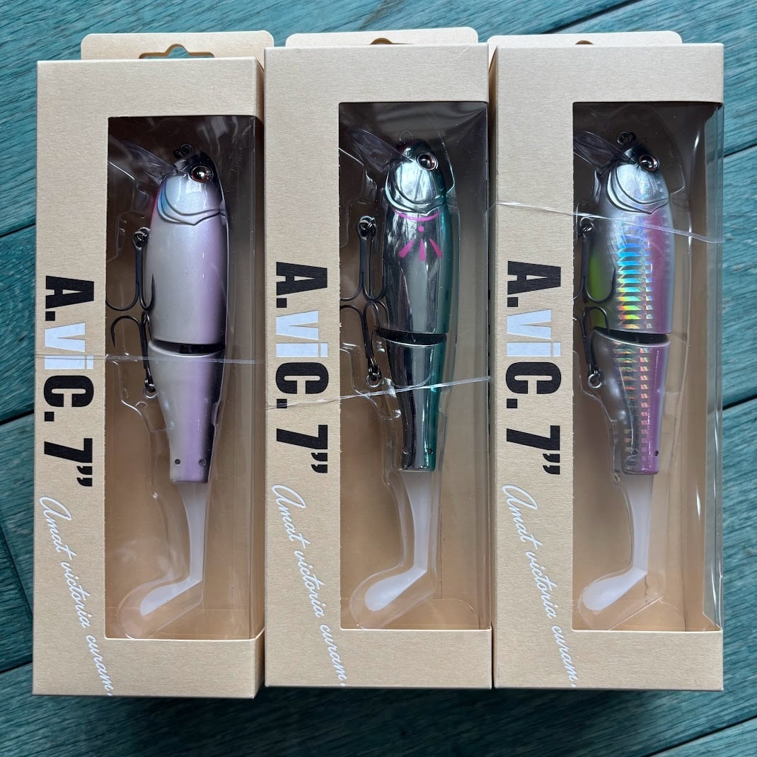 ルアーが完全に水面を割らない、水面下数センチの絶対領域。魚を強烈に反応させるそのレンジを攻略するためのルアーがAviC 7”(アヴィック7インチ)です。アヴィックにはハンドメイドルアーが持つ“水を掴みながら絶妙に揺らぐ釣れるアクション”を実現する、ルアーデザイナー赤松拓磨の方程式を組み込んでいます。揺らぎのあるアクションは多くの魚を反応させますが、揺らぐことで生じるアクション波動の乱れはルアーが見切られる原因にもなります。そこでアヴィックは波動を乱さずに揺らぐアクションの実現を目指しました。リップ角度に対して、ウエイト位置をあえてアンバランスに配置する事で、アクションを大きく乱し、それを制御する為のテールを設計。この乱しと制御のバランスを取ることで、アクションが抜けて揺らぐのでは無く、しっかりと水を掴みながら軌道が揺らぐアクションを実現しています。