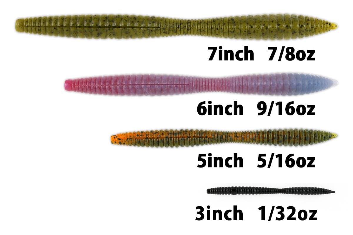 ウィードジャングルもスルリとすり抜けるシンプルなアウトラインながらも、フロントとリアボディの異なる形状が生み出す複雑な水流波動、不規則に生々しく蠢くアクション、そして着底時にバルキーボディが跳ね返るリバウンドアクションで、老獪なビッグバスに思わず口を使わせてしまうバルキースティックワームです。