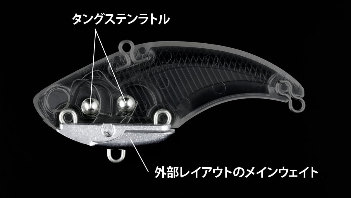 いかなるリトリーブスピードでも安定したレンジキープ力を持ち、ストラクチャーにコンタクトしても、すぐさま態勢を整え軌道に戻る、直進性の高いイヴォークコンセプトを継承する、猪突猛進型バイブレーション。