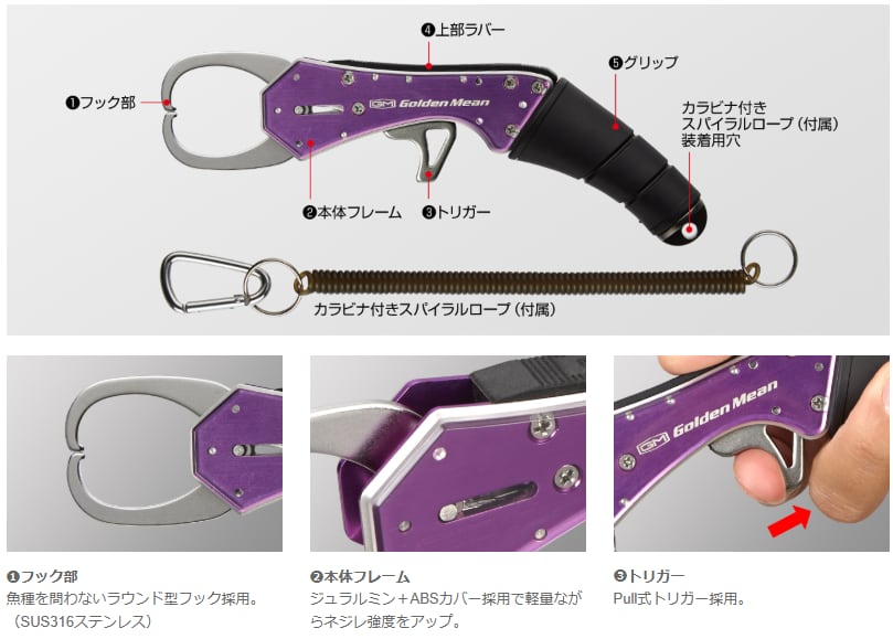 「GMグリップ」はライト〜ミドルサイズまでの魚をターゲットにした取りまわしが便利な小型ランディンググリップです。