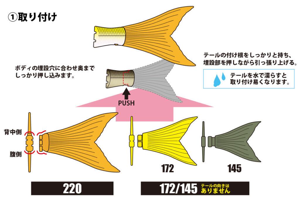 テール付根を下方向に引っ張り、破損しないよう取り外してください。